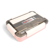 The transparent body allows you to see your food inside, while the pink lid and clips add a modern and fresh look. The two compartments provide efficient meal organization, and the secure clips ensure the lunch box remains tightly sealed.